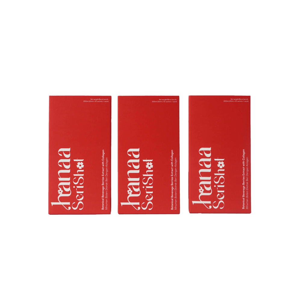 Hanaa SeriShot is a botanical beverage infused with berries extract and collagen, designed to promote beauty and wellness. Packed with antioxidants and skin-nourishing ingredients, this vibrant red drink supports a youthful glow and overall vitality. Perfect for those looking for a refreshing and beneficial daily boost.